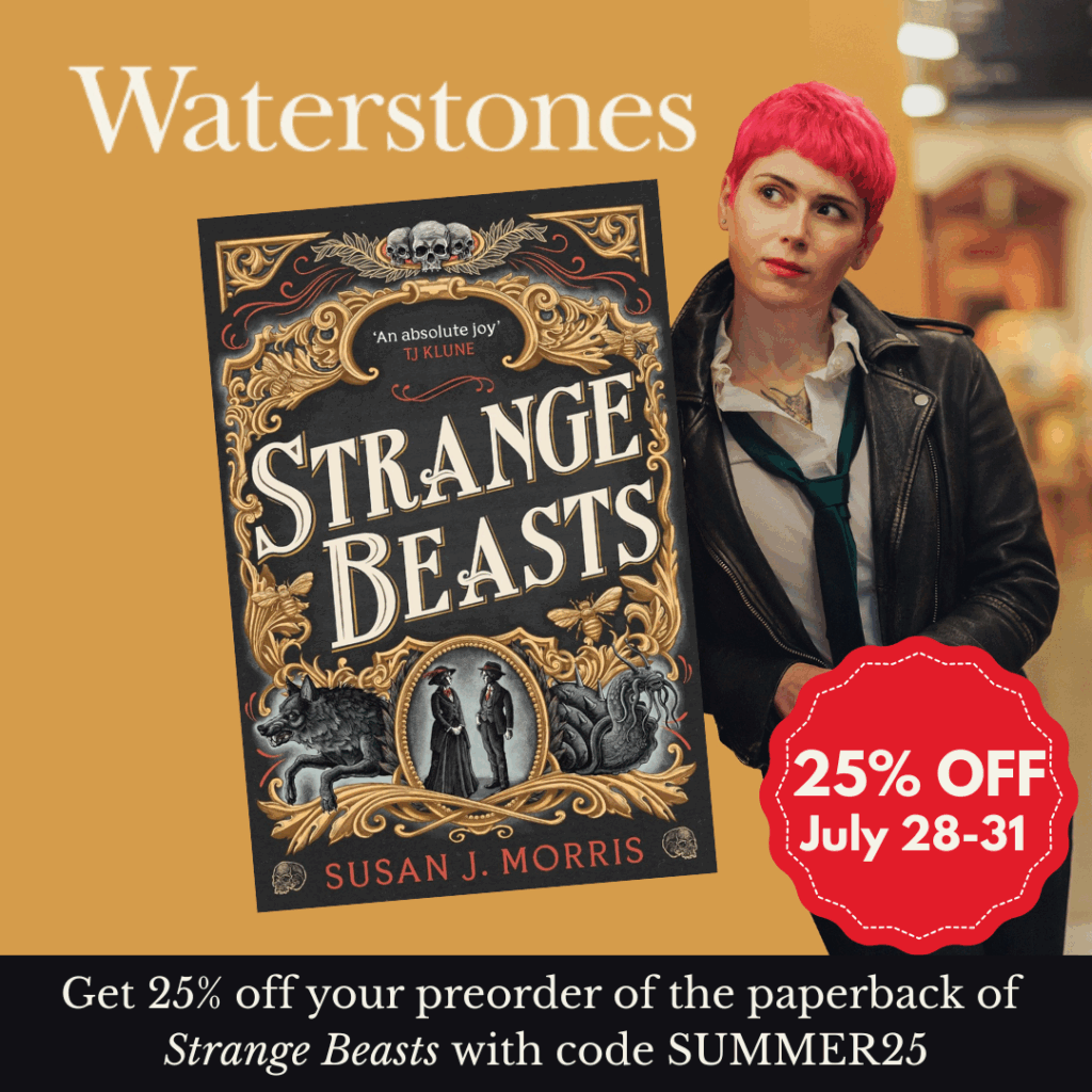 Can you believe it’s nearly been a full, entire YEAR since Strange Beasts released?? (I can’t.) That means that this Waterstones sale, you can get 25% off pre-orders of the UK paperback of Strange Beasts (not pictured to scale), which is due to release October 9th, 2025. Just use code: SUMMER25